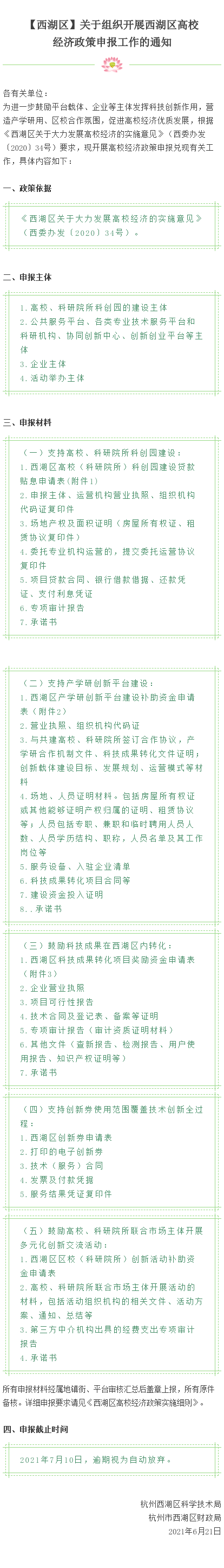 【西湖區(qū)】關(guān)于組織開展西湖區(qū)高校經(jīng)濟政策申報工作的通知