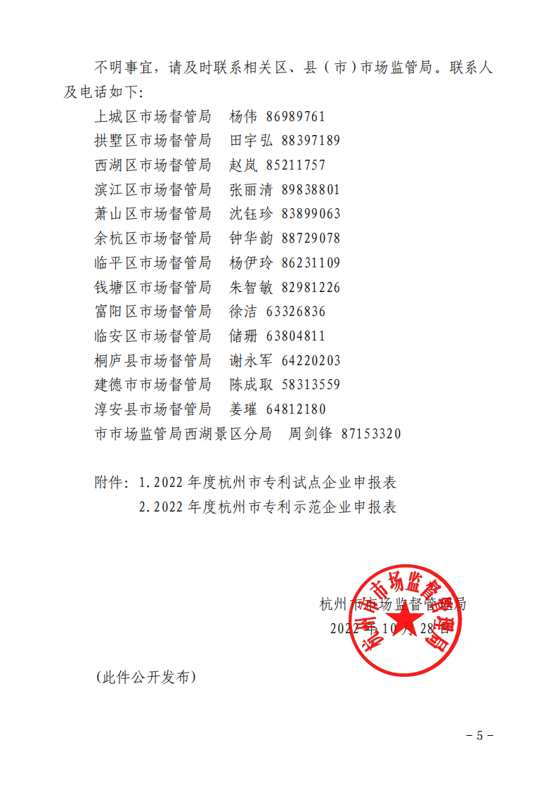 關(guān)于組織開(kāi)展2022年度杭州市專利試點(diǎn)企業(yè)和示范企業(yè)申報(bào)工作的通知