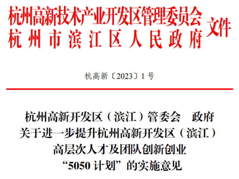 關(guān)于進(jìn)一步提升杭州高新開發(fā)區(qū)(濱江)高層次人才及團(tuán)隊創(chuàng)新創(chuàng)業(yè)“5050計劃”的實施意見